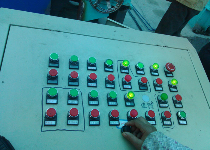 公司給陜西省渭南的陜西盛鋼管業有限公司的鍍鋅鋼帶車間的酸洗生產線;此酸洗生產線由開卷小車,開卷機,剝殼機,夾送機, 剪刀機, 酸洗洗, 酸霧循環系統,清洗機,夾送機,剪刀機,收卷機,收卷用小車及液壓系統;控制系統包括三菱PLC(FX2N64R),大功率變頻器(95KW)一個,中小功率變頻器,22KW,5KW,3KW等。